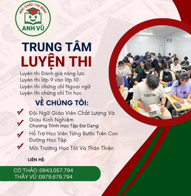 Là địa chỉ uy tín tại Đức Hòa – Long An, Trung Tâm Bồi Dưỡng Kiến Thức Tổng Hợp Anh Vũ chuyên luyện thi và bồi dưỡng kiến thức cho học sinh từ lớp 6 đến 12, với đa dạng chương trình:
